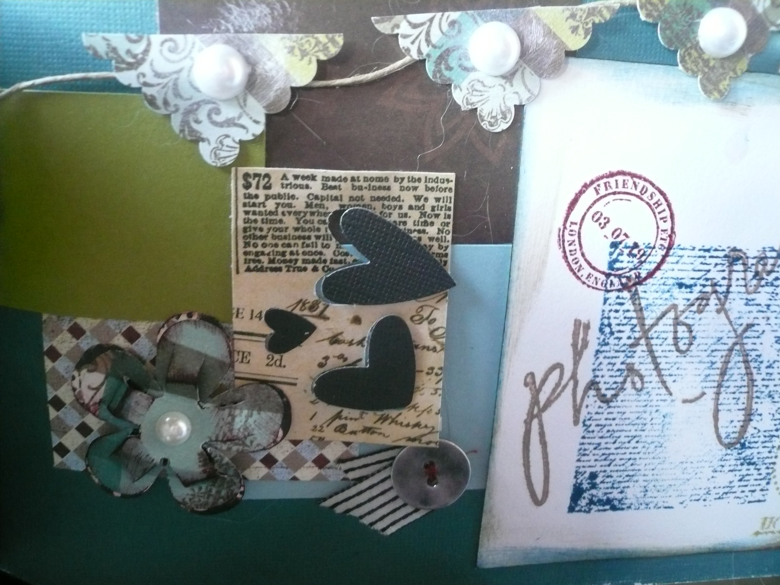 Un mini album dans les tons de bleu canard ,caramel, ,vanille, chocolat,bordeau et vert olive.